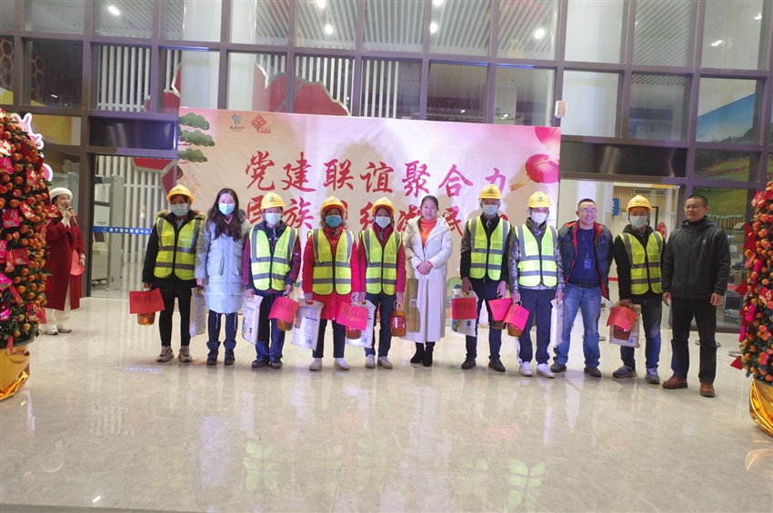 活動開始前,軌道地產(chǎn)公司副總經(jīng)理黃曉玲和黨員干部為生產(chǎn)一線建筑工人發(fā)放慰問品,并送去了新春祝福,感謝這些城市建設(shè)者們的辛勤付出,感謝他們?yōu)槟蠈?/span>這座城市的發(fā)展做出的不平凡貢獻。