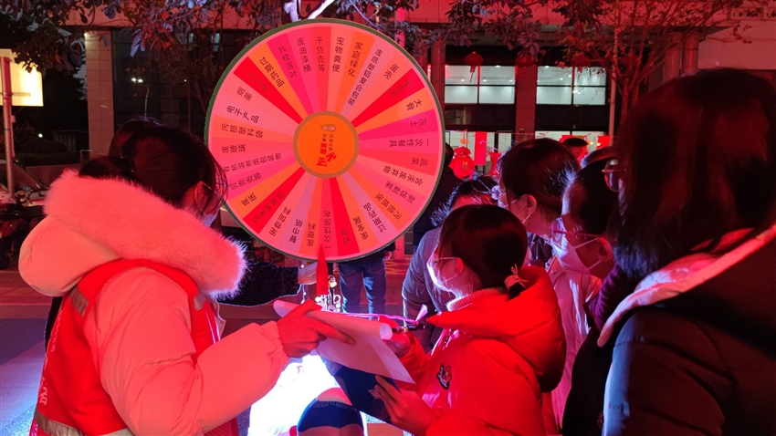 紅火的燈籠掛在枝頭,濃濃的年味已在廣場上蔓延,燈籠上懸掛有節(jié)日燈謎以及黨的二十大知識、民族團結(jié)知識、廉潔知識、垃圾分類知識、安全生產(chǎn)知識的題目。大家三五成群看謎面、猜謎語,沉浸在猜謎解謎的樂趣中。這種寓教于樂的方式,充分調(diào)動了大家學習的興趣,大大提高了黨員教育的實際成效。